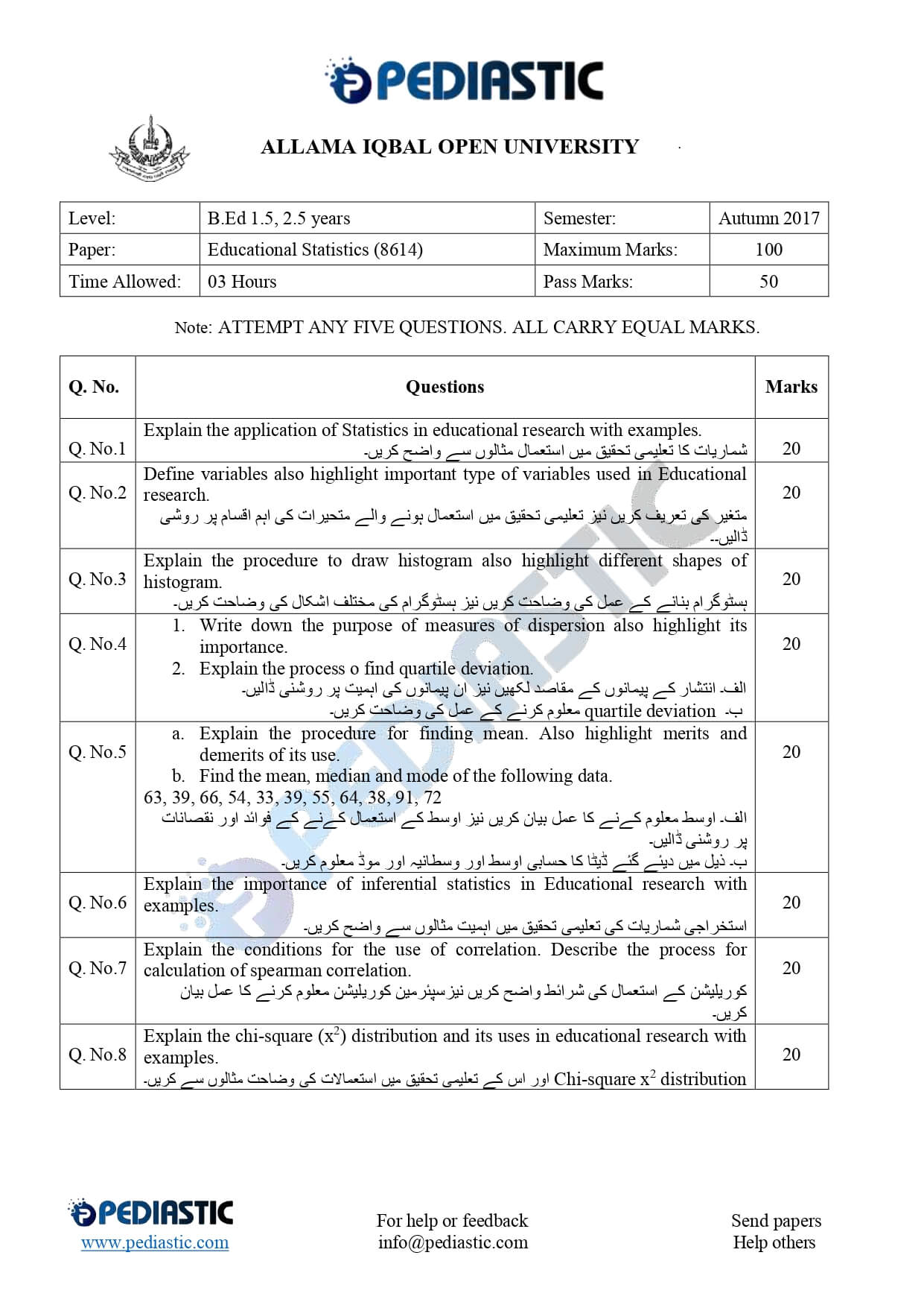 Allama Iqbal Open Uni past papers: AIOU Old Papers of B.Ed.