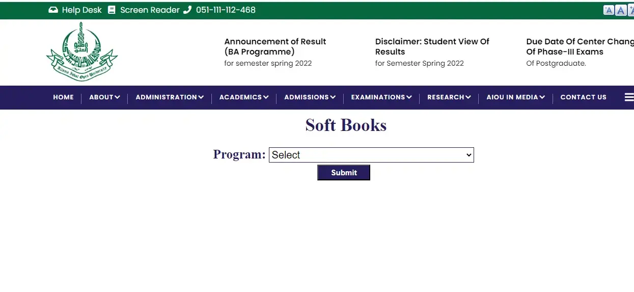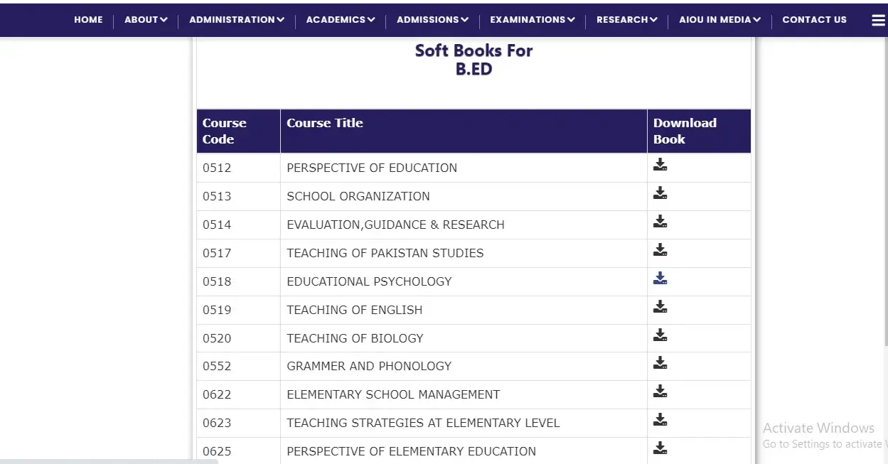 The first step is to visit AIOU’s official page for soft books at www.aiou.edu.pk/books.