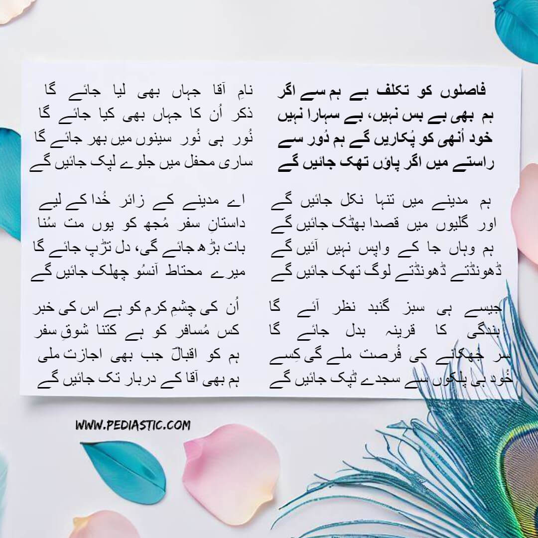 | O Pilgrim of Madinah, for God’s sake | اے مدینے کے زائر خُدا کے لیے | Aey madeeny ke za’er Khuda k leay |