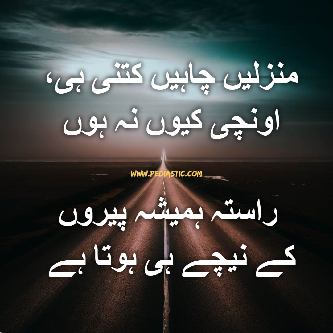Manzilein chahain kitni hi onchi kyun nah hon, Rasta hamesha peeron k neechay hi hota hai.