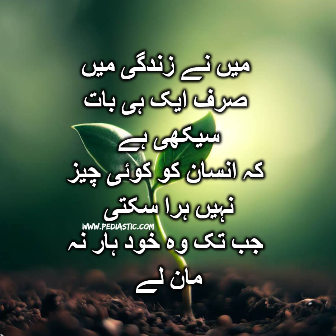 جب تک وہ خود ہار نہ مان لےMein nay zindagi mein sirf aik hi baat seekhi hai Ke ensaan ko koi cheez nahi hara sakti Jab tak woh khud haar nah maa le
