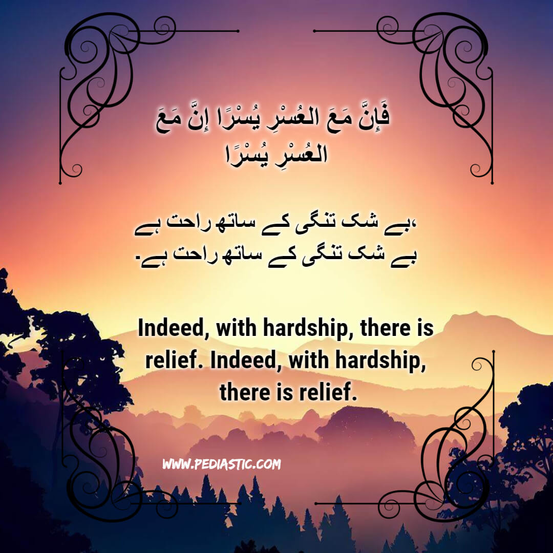 ترجمہ: بے شک تنگی کے ساتھ راحت ہے، بے شک تنگی کے ساتھ راحت ہے۔ (قرآن 94:5-6)