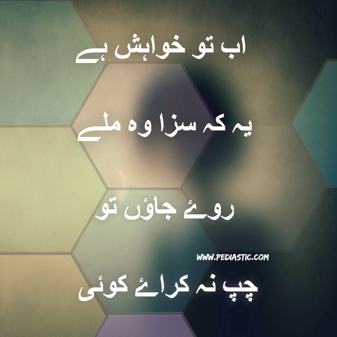 اب تو خواہش ہے یہ کہ سزا وہ ملے روۓ جاؤں تو چپ نہ کراۓ کوئی